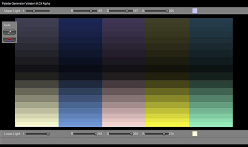 The Online Colour Tool for Digital Painters is a prototype application designed to help novice digital painters build colour palettes. The tool allows the user to input colour values and then vary the properties of lighting to see how it affects the surfaces reflected hue, tone and saturation. Finally, the user can build a palette and output it as an Adobe Swatch Exchange (ASE) file that can be used in Photoshop or Illustrator.